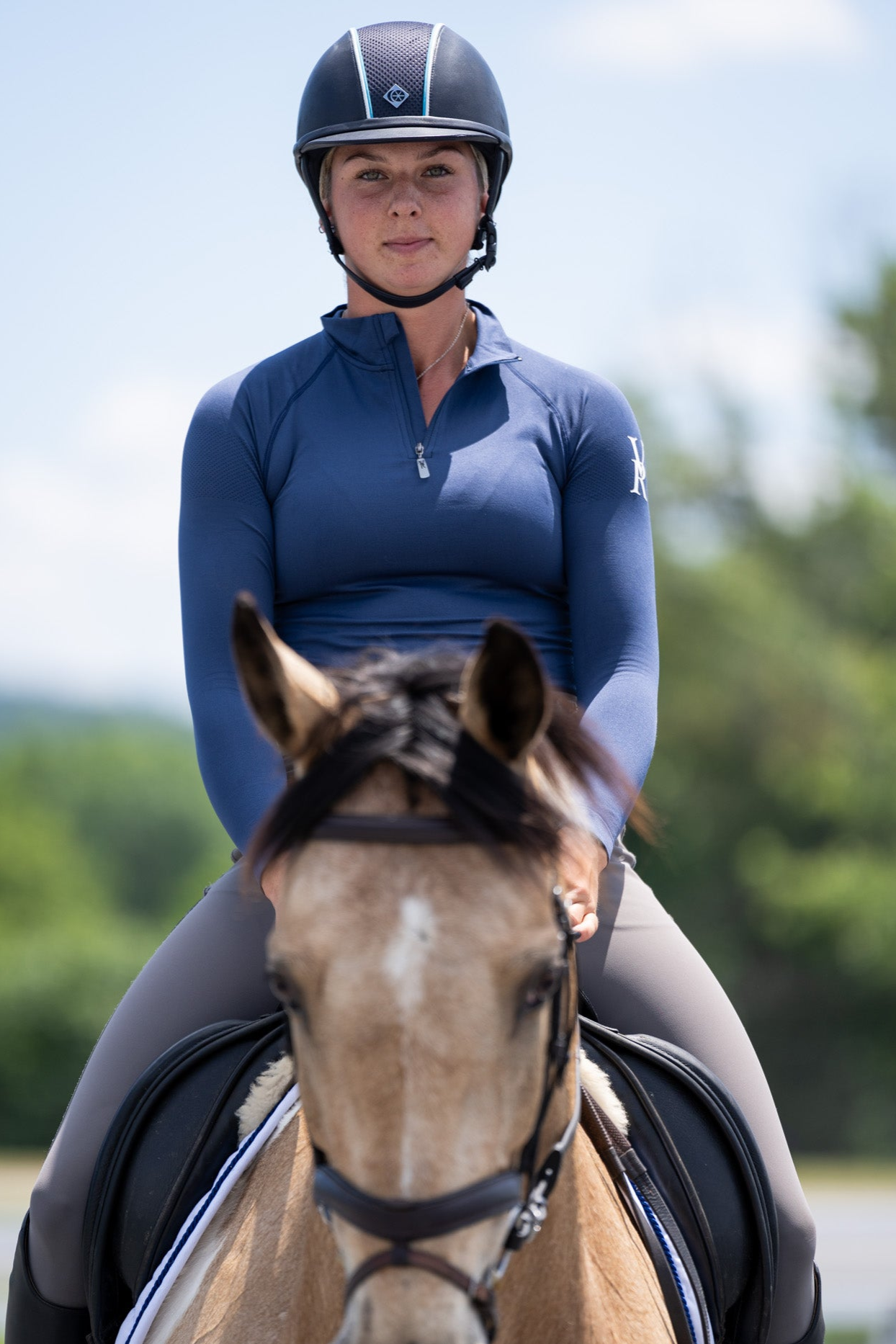 The ability to maintain a sense of calm has been key to Caitlin’s success in competition, giving her the mental clarity to perform at her best while being able to listen to and communicate with her horses. This soft, chic blue shade is the perfect inspiration to channel some of Caitlin’s zen and feel cool, calm, and collected in the saddle. Made from our moisture-wicking and quick-drying performance fabric, Calm is available in a sleek quarter zip design and features a flattering fit for a wide variety of body shapes.